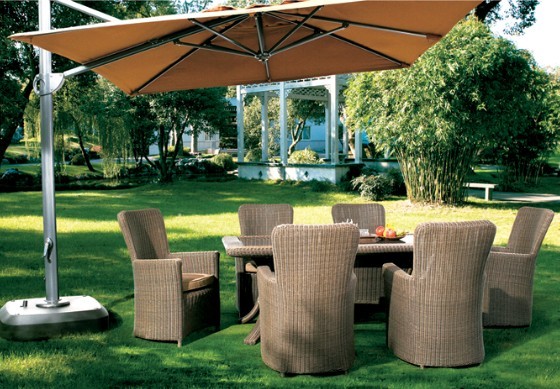 休閑桌椅LS066-編藤桌椅長方形休閑桌椅+豪華遮陽傘